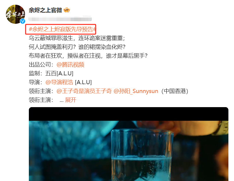 《余烬之上》发布了先导预告,将在鹅厂播出。